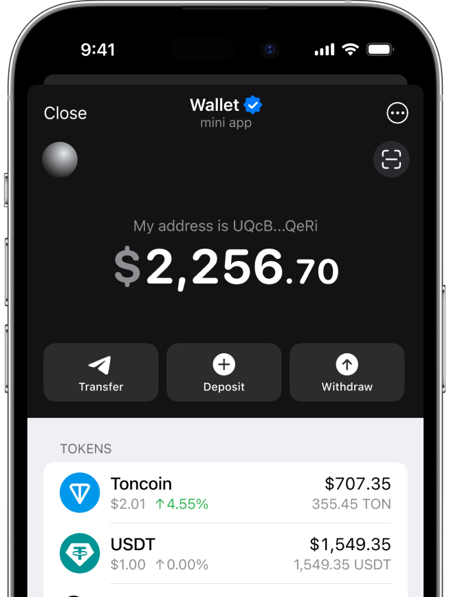 Join the 1B+ customers on Telegram and 100M+ using wallets
